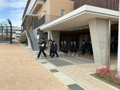 生徒からの花束贈呈です。新しい場所でもご活躍をお祈りしています。