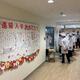 今日から1年生は給食が始まります。給食室前の「入学おめでとう」の掲示で1年生を歓迎しています。