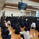3学年揃うと規模の大きさを感じます。この後、吹奏楽部の伴奏で校歌を歌いました。
