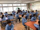 席替えしたばかりのクラスは新しい班で初めて。なかまの意見を聴いてうなづいています。お互いを知る、自分の意見を伝える、自分と違う考えを否定しないなどたくさんのスキルが詰まった取り組みです。