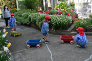 1時間目、道徳で2年生は輪になって、赤い毛糸玉をパス?して「糸の繋がり」を作っていました。パスを受け取った人は、皆に話をしています。