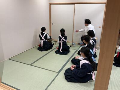 茶道部は、1年生にお点前を披露していました。キリッとした空気でお茶を点てています。